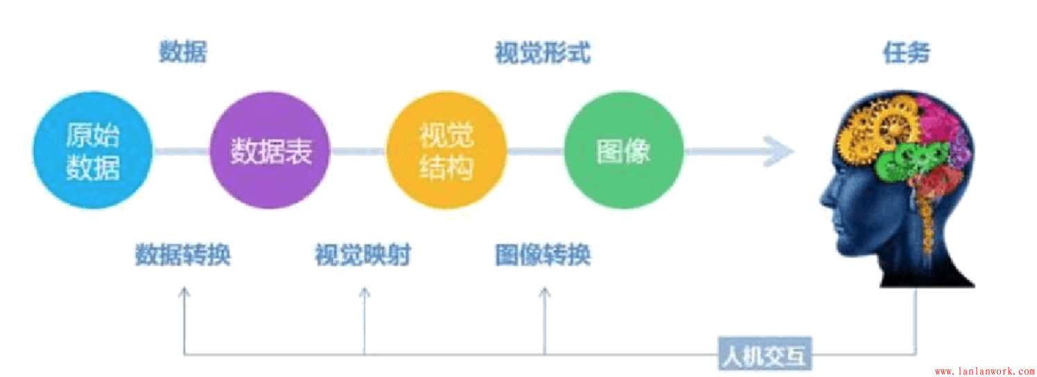 有了故事,還需要找到數(shù)據(jù),并且具有對(duì)數(shù)據(jù)進(jìn)行處理的能力,圖1是一個(gè)可視化參考模型,它反映的是一系列的數(shù)據(jù)的轉(zhuǎn)換過(guò)程:
