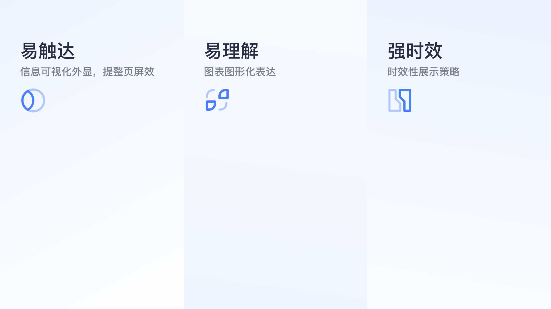 易理解:通過數據結構化、圖形可視化、標簽化字體等用戶更易理解的設計表達語言,幫助用戶更簡單快捷的獲取信息。