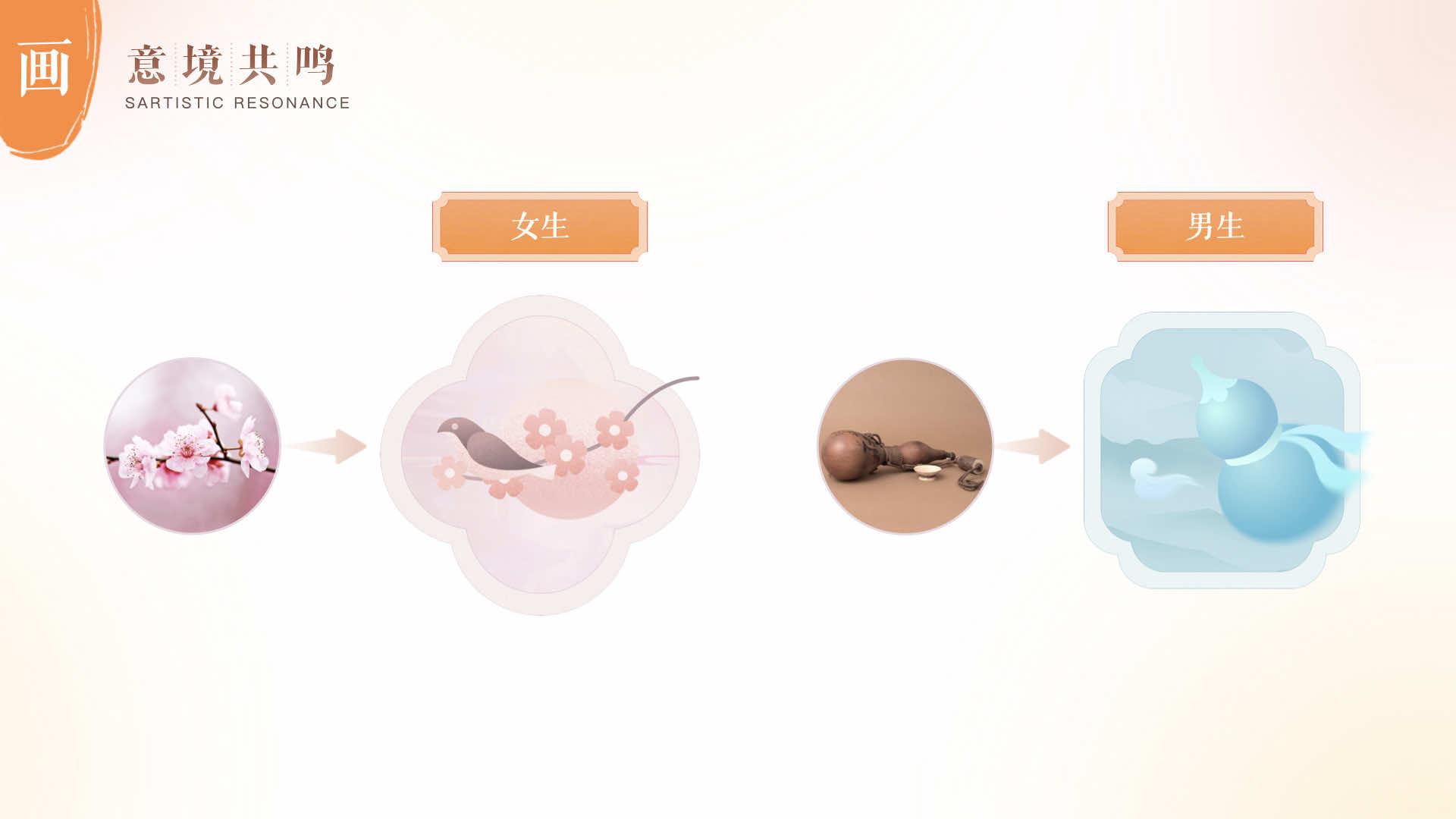 例如,女生的插畫圖形,首先劃分為偏向言情類型,由此聯(lián)想到一只小鳥站在桃花上,整體采用粉色調(diào)的場景進行展現(xiàn),夢幻而唯美。男生的插畫圖形則偏向玄幻類型,從而聯(lián)想到葫蘆,由此繪制出葫蘆和浮云結(jié)合的畫面,自由而飄逸。