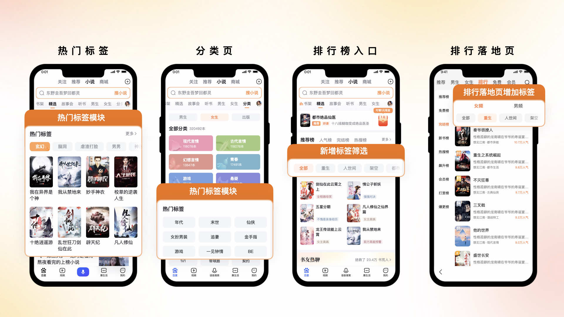 只有貼心的服務(wù)是遠遠不夠的,以人為本的設(shè)計還需要為用戶打造更高效的設(shè)計體驗,我們通過簡化設(shè)計流程,智能化推薦等手段,讓用戶體驗更便捷,決策更精準在各類場景新增書籍標簽?zāi)K,提升用戶篩選書籍的精準度,使得用戶在各類場景下找書更高效。