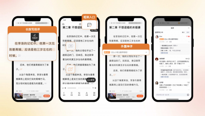 閱讀器場景是用戶使用時長最長的一個場景。因此我們?yōu)橛脩籼峁┝硕卧u功能,方便用戶閱讀過程中和書友進行交流,為了不影響閱讀的流暢性,我們采用弱化的段評圖標樣式和色彩,段評入口設(shè)計在段落尾部,減少對閱讀的干擾。