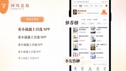 宋朝詩人汪洙在《神童詩》中有這樣的千古名句:“萬般皆下品,唯有讀書高?!弊x書自古以來是成為高雅風韻的文人士大夫的必經(jīng)之路。由此可見,自古以來讀書和雅致之間就結(jié)下了不解之緣,閱讀與國風雅頌的風格也就找到了完美的交匯點,因此小說設(shè)計團隊在確定設(shè)計風格的探尋中,選擇了國風的風格來體現(xiàn)百度小說的人文感的設(shè)計。