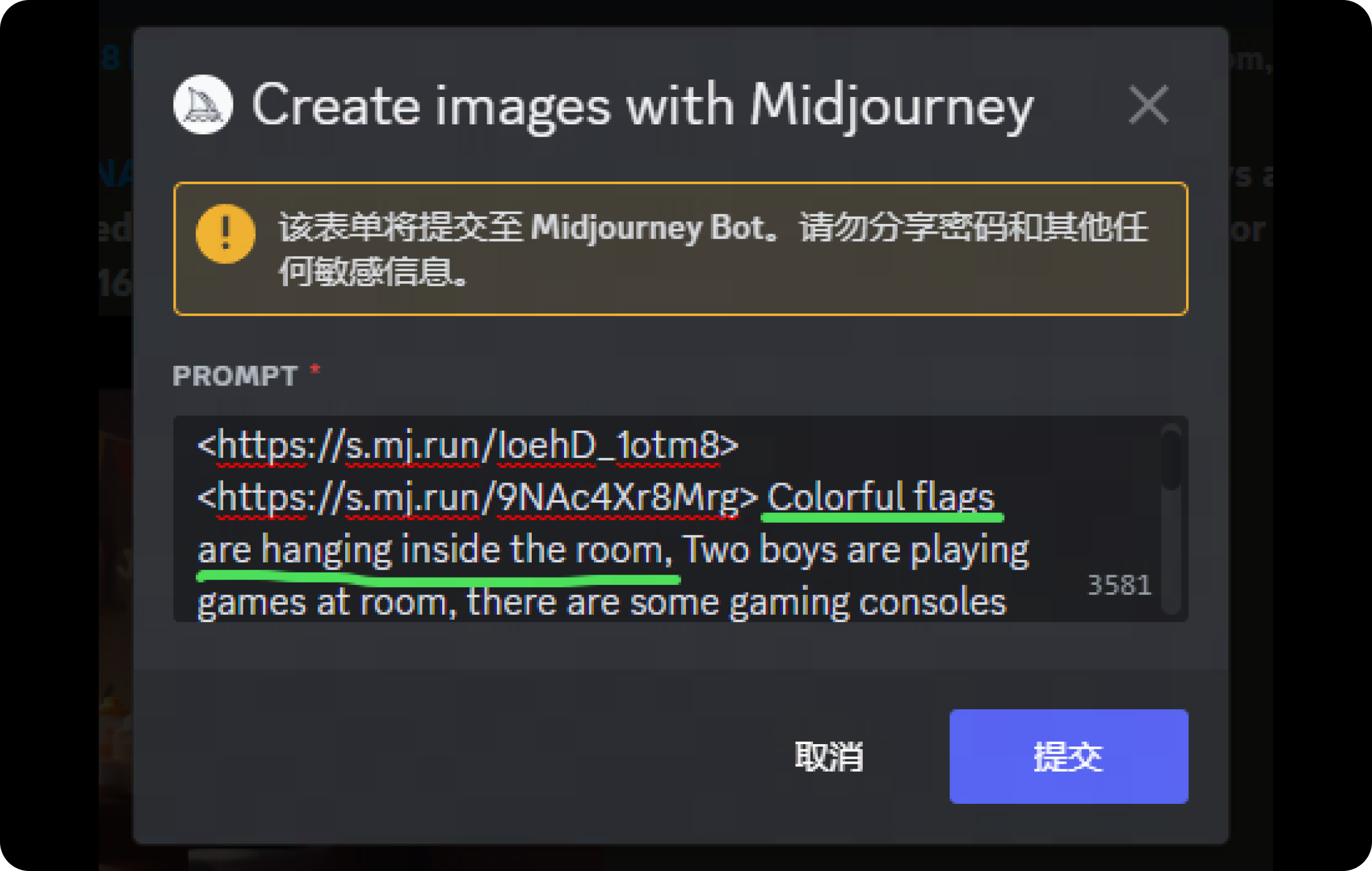 確定好修改方向后,我們回到Midjourney中,設置好混音模式Remix mode,修改關鍵詞對畫面中元素進行替換。