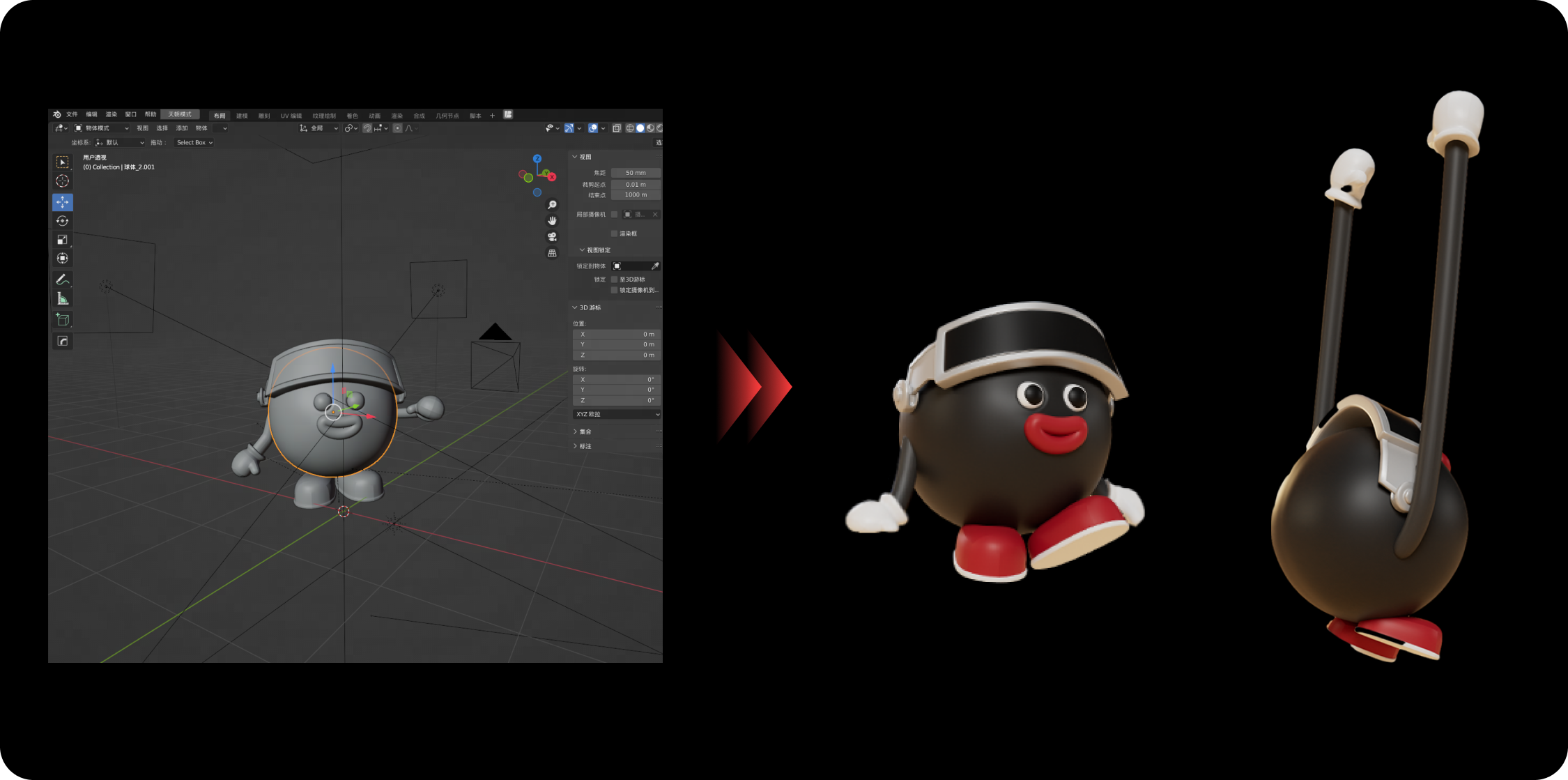 只需把圖丟上去就能迅速摳出畫面主體,非常方便。最后我們要將IP形象霸哥融入進畫面,因為IP形象是特定的,所以在這我們使用三維軟件去進行IP形象動作的調整。