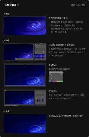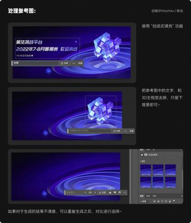 生成的素材我們需要先用 PS 處理一下,背景素材需要處理的地方:主視覺多余的部分需要刪掉、色調處理、圖片比例修改。