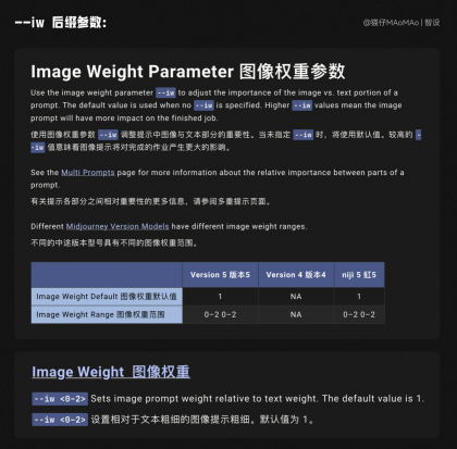 這個時候不要慌,也不要著急去改關鍵詞,我們只需要添加上一個神奇的后綴“--iw 2”,官方文檔的翻譯中,這個參數叫做“圖像權重參數”,用來調整關鍵詞中文本與參考圖的相似度,默認值為 1 ,范圍為 0~2 ,值越高,生成的圖與原圖更像,注意在 V5 和 niji 模型中使用才能生效。