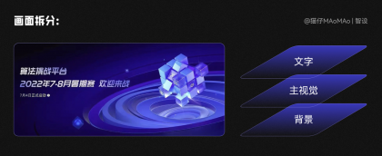 這一步考驗的是設計師的審美和手活,我們需要把背景和主視覺素材,進行視覺合成,其實也非常簡單:這里我定的主要色調是藍色+青色的光感,首先需要將色調整體統一;然后想要表現出玻璃質感的通透,我們需要加上一些光感;最后文字排版出圖即可~