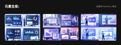 數據分析與可視化的背景,直接生成數據圖表的效果并不是很理想,把辦公室場景全部描繪出來生成的素材更加符合需求,但是還需要再手動對素材進行細化。