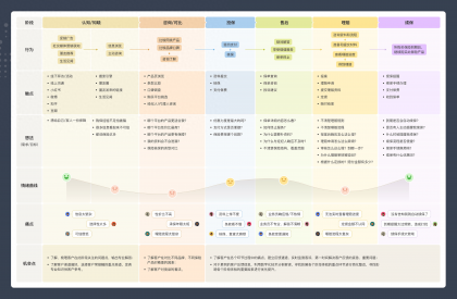 畫(huà)出用戶旅程圖是我特別喜歡的一個(gè)工作方法,可以與產(chǎn)品、研發(fā)、市場(chǎng)團(tuán)隊(duì)一起共創(chuàng),優(yōu)化產(chǎn)品。