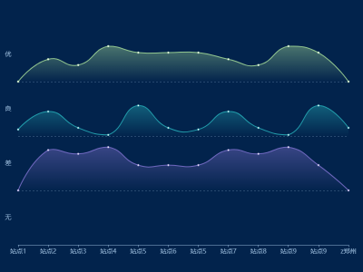 折線圖適用于展示數(shù)據(jù)的趨勢(shì)變化。折線圖可以顯示一段時(shí)間內(nèi)數(shù)據(jù)的變化趨勢(shì),例如溫度、銷售額、人口變化等。折線圖可以清晰地顯示出數(shù)據(jù)的峰值和谷值,以及趨勢(shì)的變化速度。