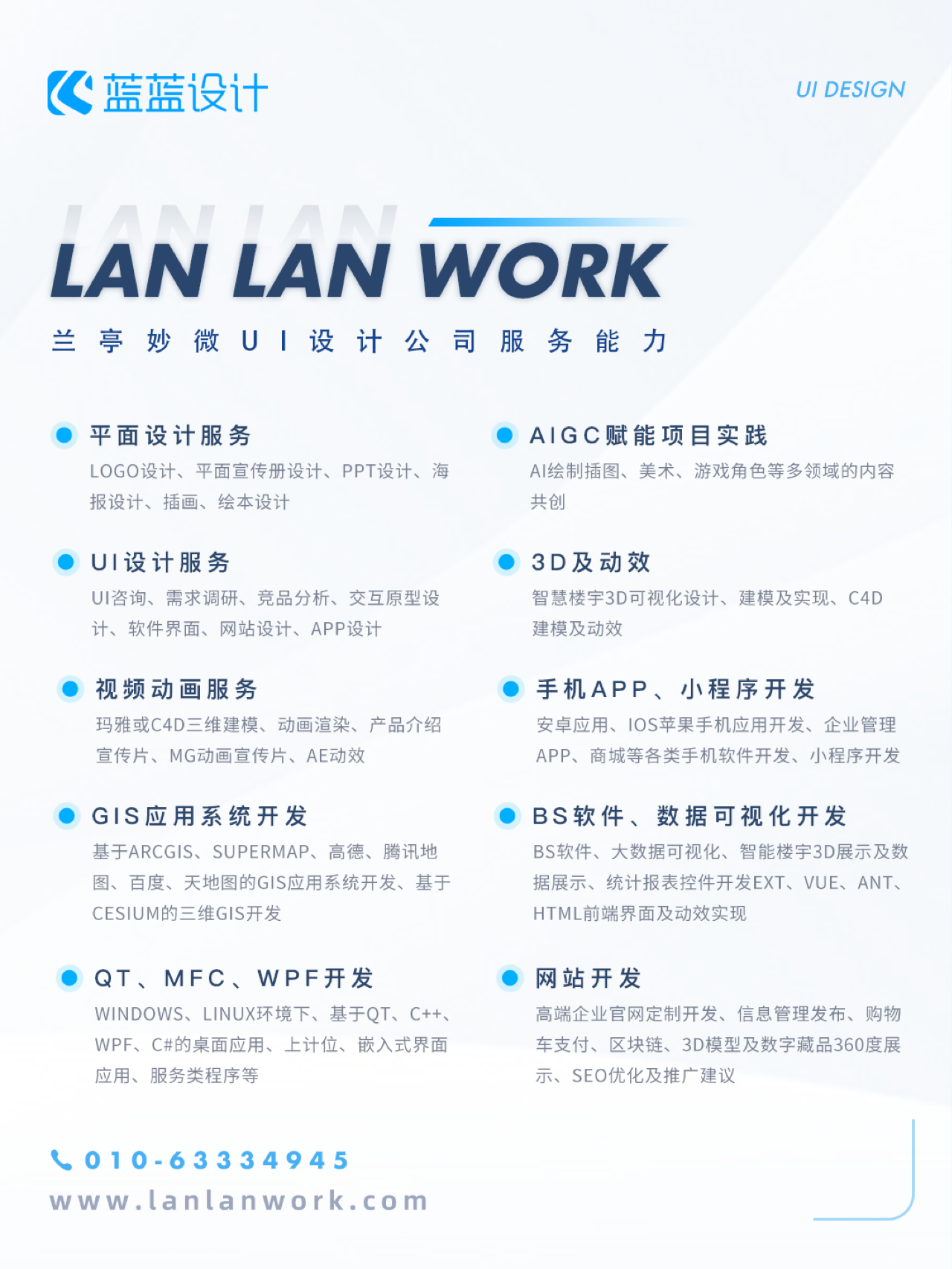藍藍設計(www.ocunn.cn )是一家專注而深入的界面設計公司,為期望卓越的國內外企業提供卓越的大數據可視化界面設計、B端界面設計、桌面端界面設計、APP界面設計、圖標定制、用戶體驗設計、交互設計、UI咨詢、高端網站設計、平面設計,以及相關的軟件開發服務,咨詢電話:01063334945。