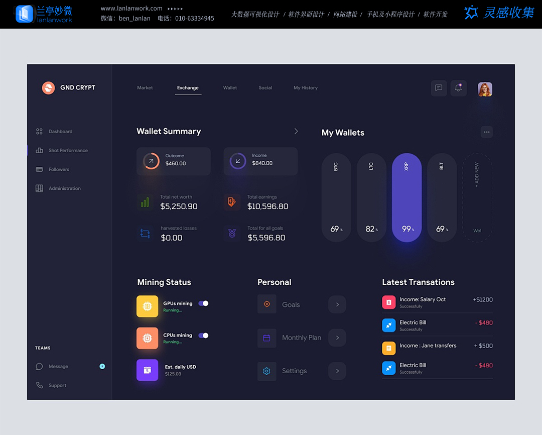 藍藍設計(www.ocunn.cn )是一家專注而深入的界面設計公司,為期望卓越的國內外企業提供卓越的大數據可視化界面設計、B端界面設計、桌面端界面設計、APP界面設計、圖標定制、用戶體驗設計、交互設計、UI咨詢、高端網站設計、平面設計,以及相關的軟件開發服務,咨詢電話:01063334945。我們建立了一個微信群,每天分享國內外優秀的設計,有興趣請加入一起學習成長,咨詢及進群請加藍小助微信ben_lanlan。