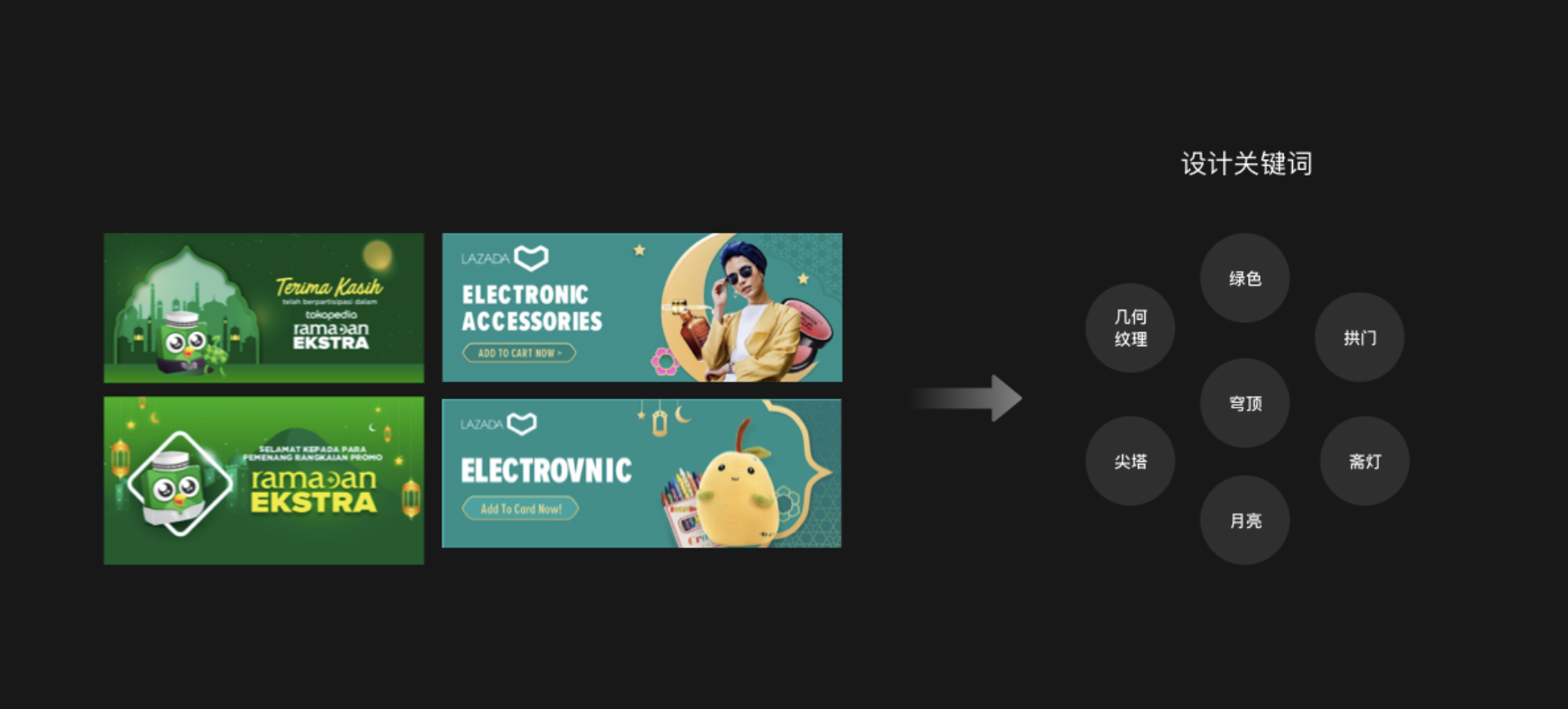 所以在這個期間做活動宣傳時,可以多運用伊斯蘭教的一些元素,例如:齋月的齋燈,月亮,以及伊斯蘭教寺廟的尖塔、穹頂和幾何紋理的裝飾等等,都可以融入到設計中,形成獨特的本土風格,更容易獲得當地人的喜愛和認可。