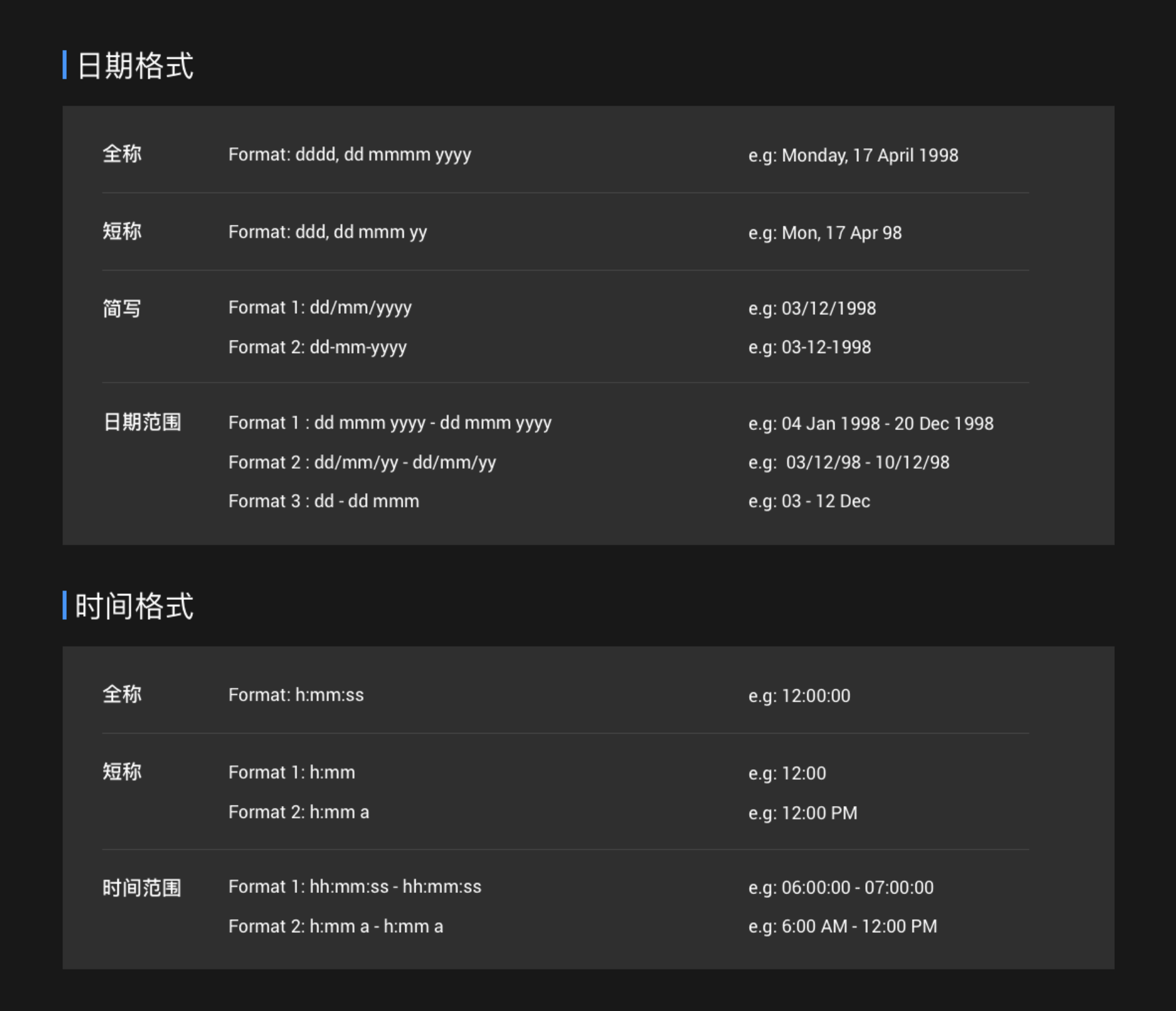 中國的日期格式是 YMD,印尼的日期格式是 DMY。在印尼,書寫的格式通常有三種,用“ , ” 或” / “或是“ – ” 進行分隔,例如 Monday, 17 April 1998 或 04/17/1998 或是 04-17-1998。