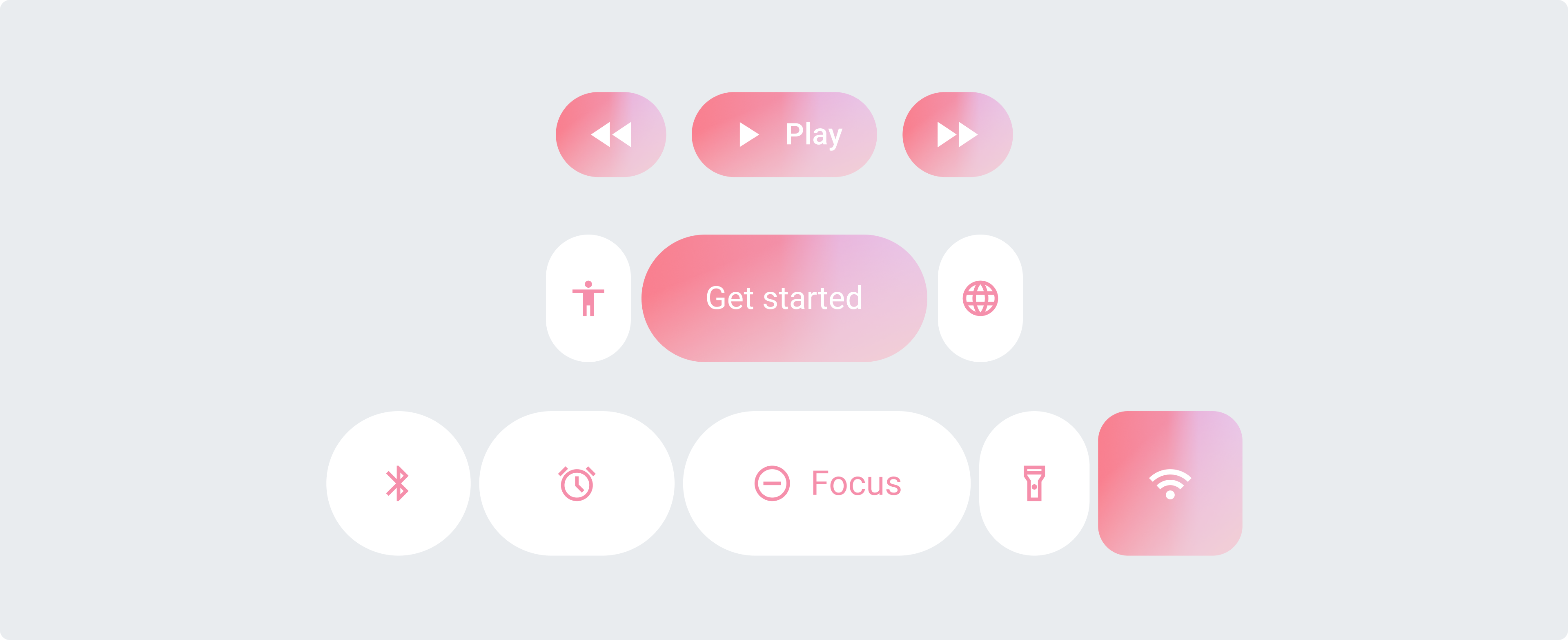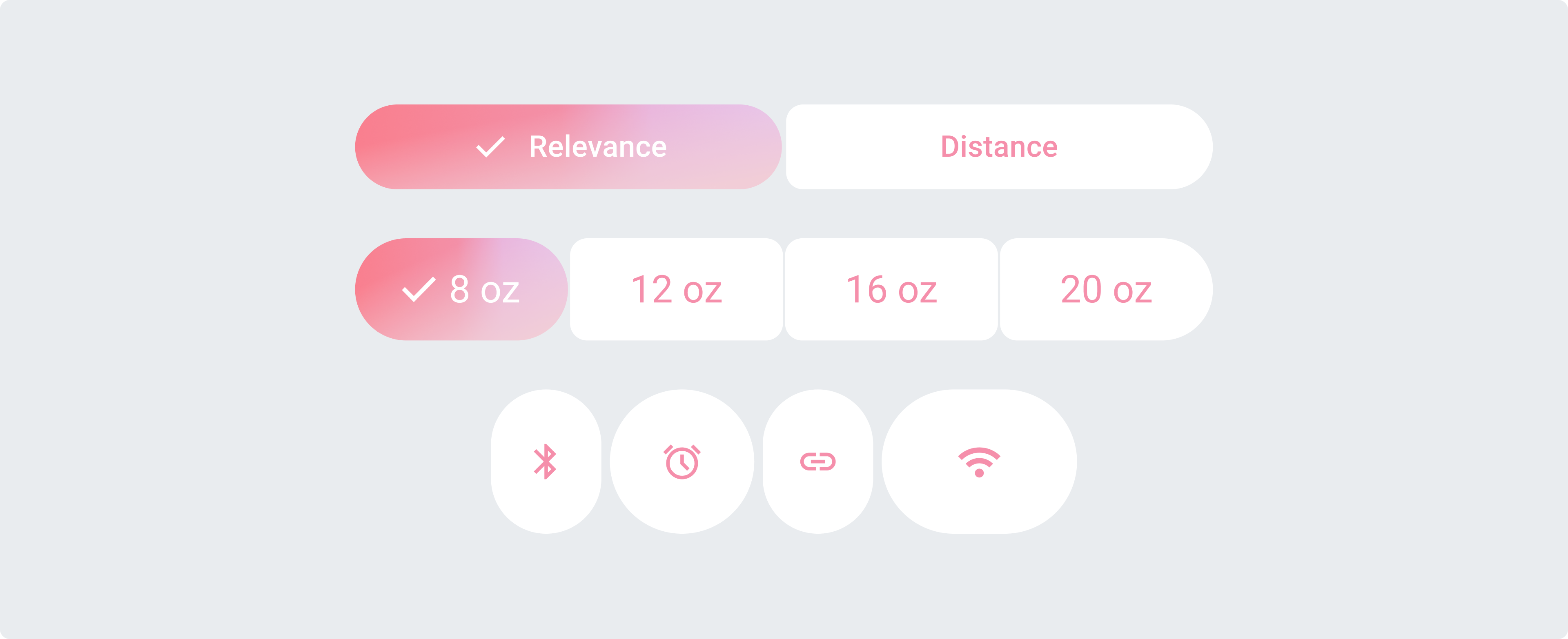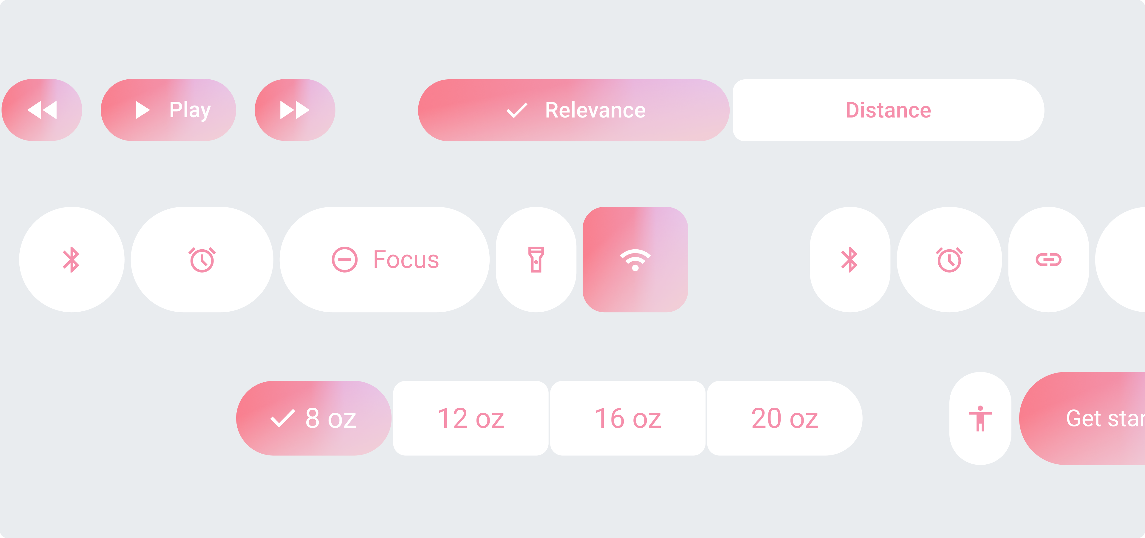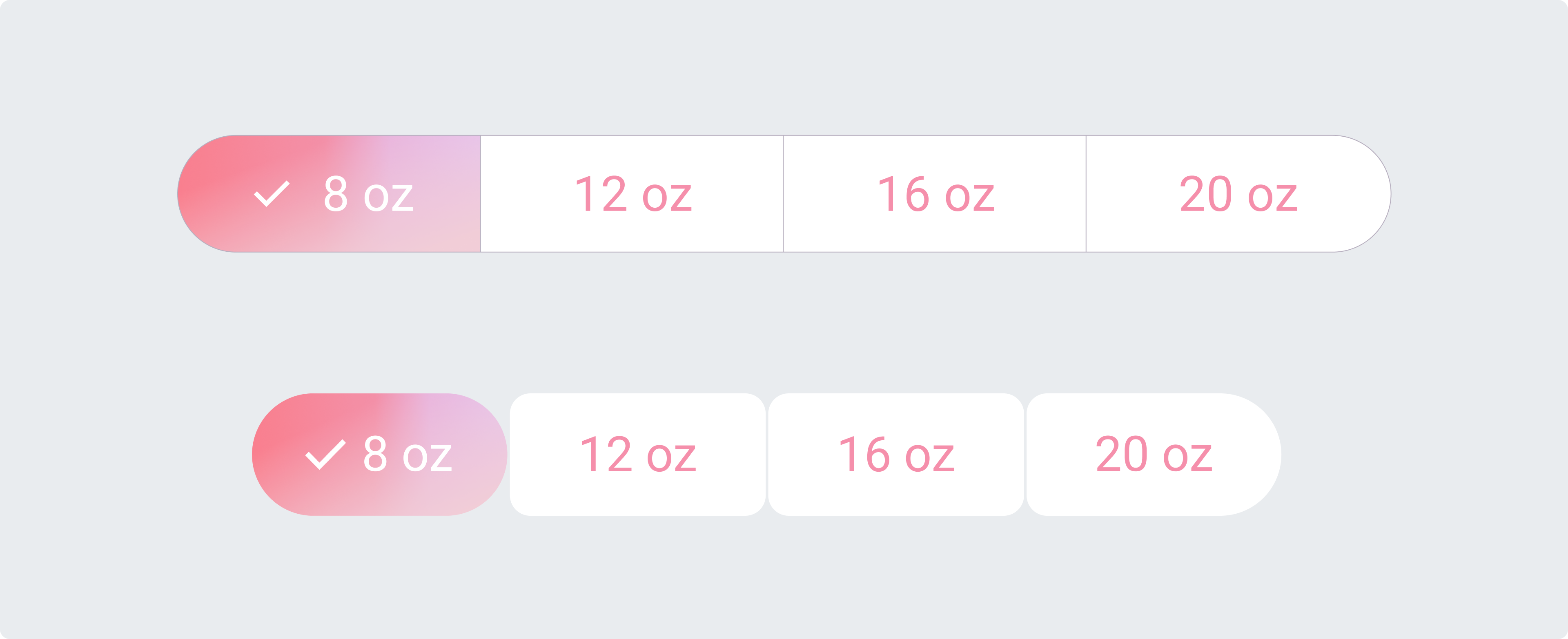 每個(gè)按鈕都保持圓潤(rùn)的形狀,并且按鈕之間有一定的間距。在此組中,選定的按鈕可以改變寬度或形