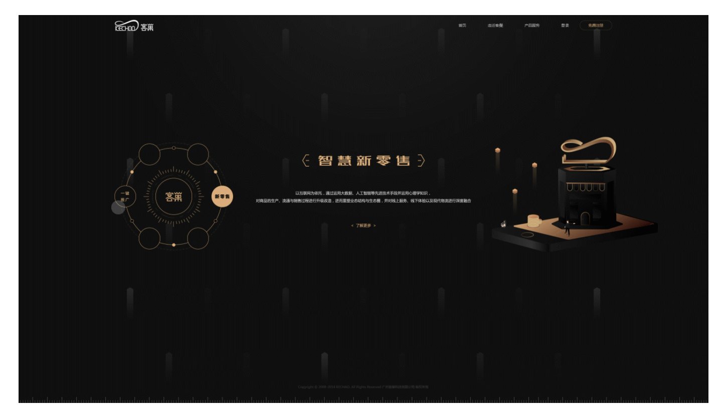 以 “客巢” 網站為例(設計分辨率 25601440,核心內容適配 19201080),分享關鍵元素的實現(xiàn)方法: