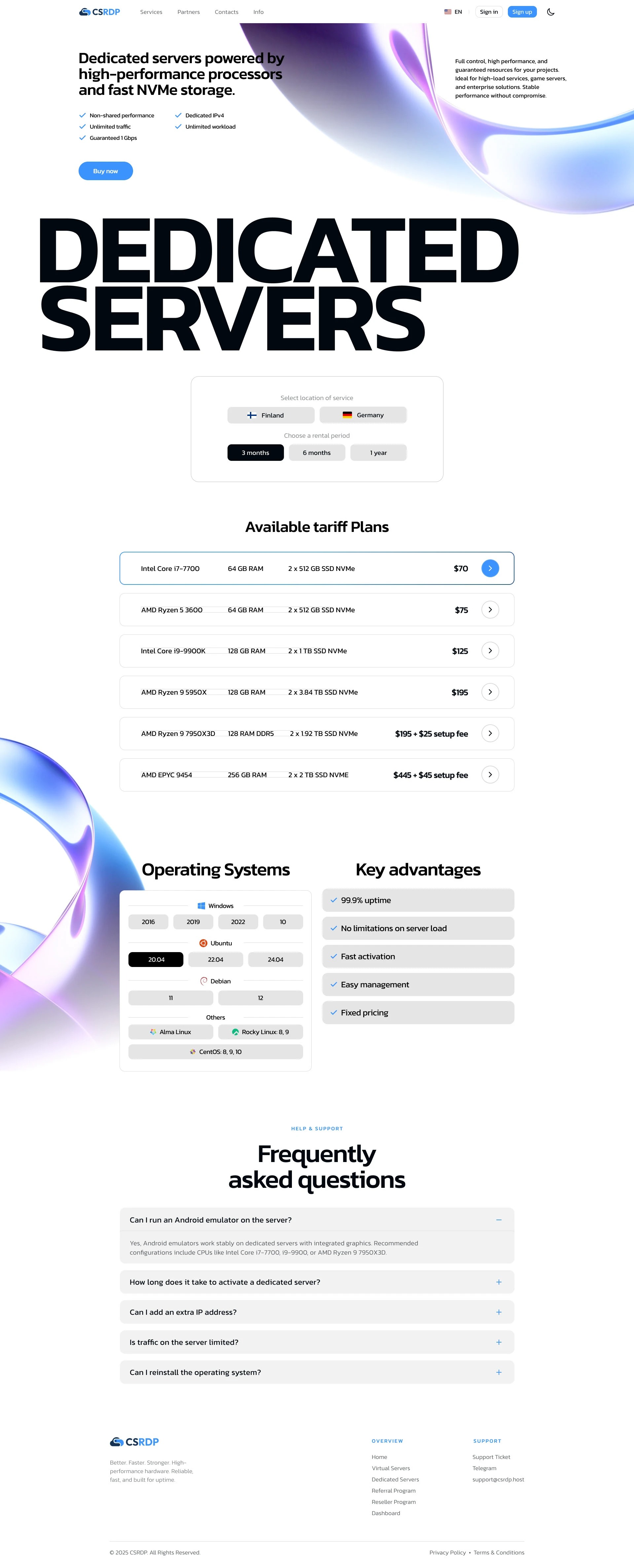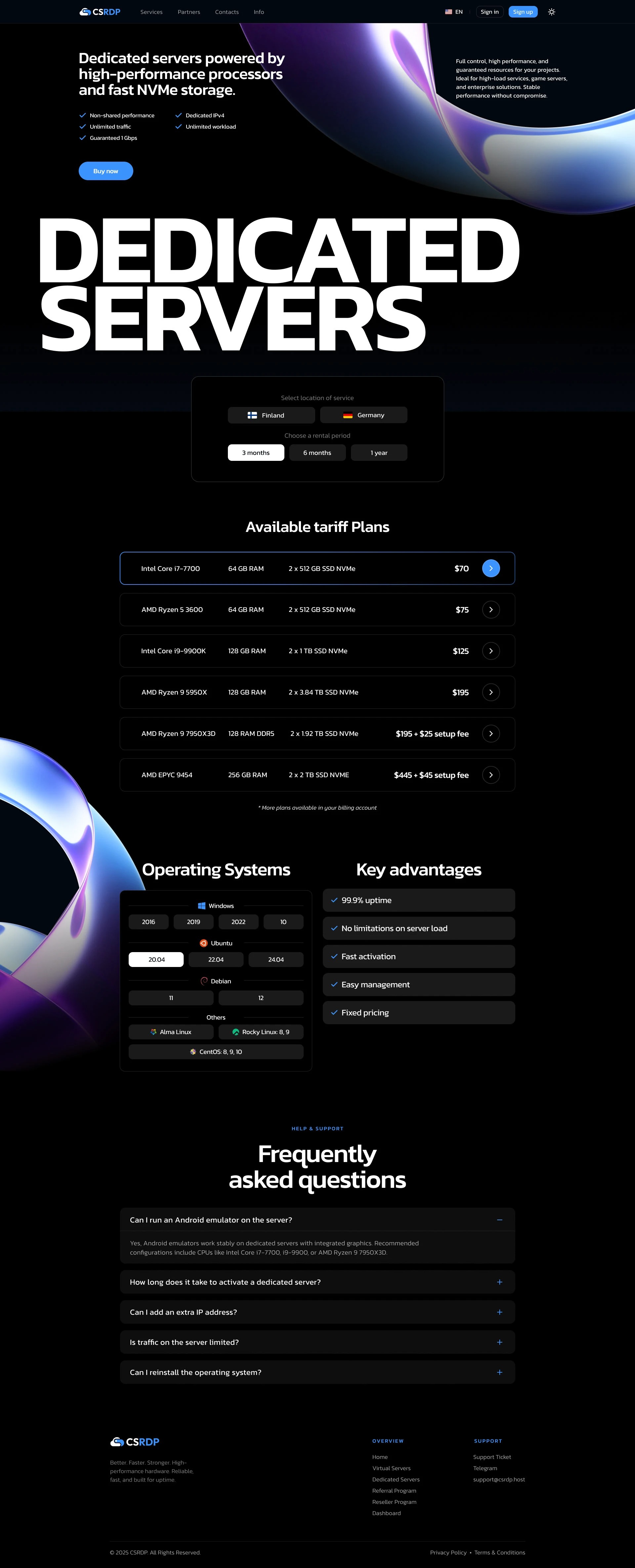 “Virtual Servers”和“Dedicated servers”兩大核心產(chǎn)品分區(qū)簡(jiǎn)明。