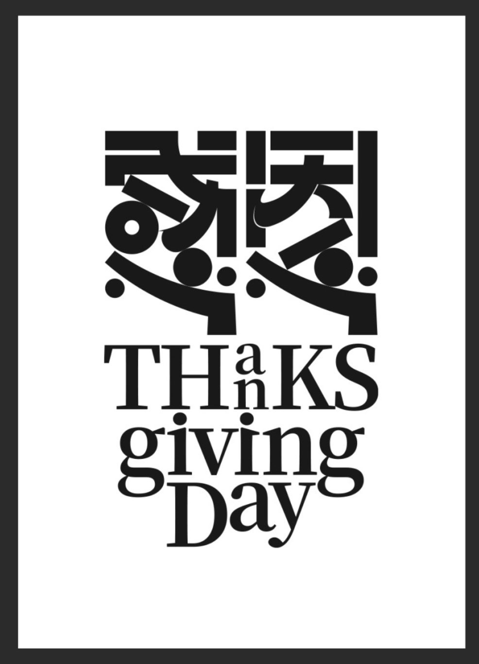 設(shè)計前先明確文字的 “核心氣質(zhì)”:“感恩節(jié)” 需要傳遞 “溫暖、感恩、西方屬性”,由此拆解出關(guān)鍵詞:西方(幾何化視覺)、第 4 個星期四(數(shù)字 4 為靈感)、感恩于心(內(nèi)柔外剛)。基于這些關(guān)鍵詞,確定設(shè)計規(guī)則:筆畫粗細用 40px(4×10),“口”“點” 用圓形替換,“心” 字旁做弧形處理,讓每個設(shè)計決策都有 “主題依據(jù)”。