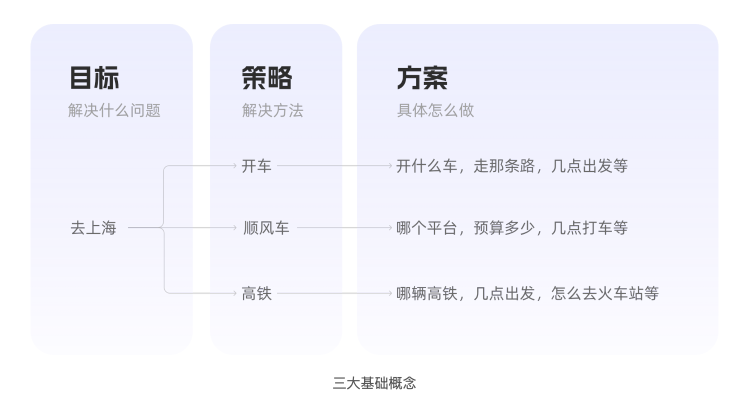 生活中的例子更易理解:業(yè)務(wù)目標(biāo)是 “半年內(nèi)減重 10 斤”,設(shè)計(jì)目標(biāo)(對(duì)應(yīng)個(gè)人行動(dòng)目標(biāo))是 “每月運(yùn)動(dòng)頻次提升 4 次、飲食熱量控制在 1500 大卡內(nèi)”,策略是 “選擇家門口的健身房降低通勤成本”“用飲食 APP 記錄熱量”,方案是 “每周一 / 三 / 五晚 7 點(diǎn)健身”“早餐搭配雞蛋 + 燕麥”。