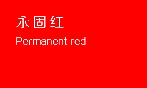 這是一種從胭脂蟲的來的顏色,意思是濃重、強烈的紅色。與永固紅相比,黃色的比重略低,有點接近紫紅色,是一種較冷偏深的顏色,現在通常認為它是一種合成顏料。