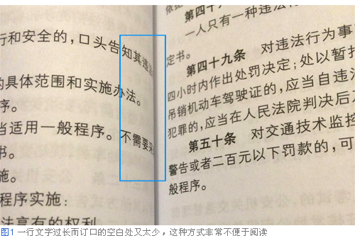 在設(shè)計工作中,如果有100個人就會有100種設(shè)計理論,我認為并不能總結(jié)出一條絕對正確的理論。但是,如果完全沒有什么設(shè)計理論的話,貌似會使設(shè)計顯得很奇怪。比如,經(jīng)常會看到這種書籍(圖1),一行文字過長而訂口的空白又處理得不太合適。只要看到這樣的設(shè)計,馬上就會想到“這里好像沒有規(guī)則啊”,還會讓人產(chǎn)生“這本書的設(shè)計師好像不讀書啊”這樣的感覺。在閱讀過程中哪怕只有一些地方令人難以理解,也會讓人精神不集中,不能徹底關(guān)注文章本身。如果是一個讀書的人,他自己看看這樣的設(shè)計,自己也會感到這種方式不便于閱讀啊。所以我認為電子書的閱讀感受也是這樣,要做出理想的版面,作為設(shè)計者需要站在讀者的角度考慮,應該尋找對于自己來說便于閱讀的排版。因此,也借此機會來整理出網(wǎng)易云閱讀產(chǎn)品中,書籍正文文字排版的相關(guān)規(guī)則。