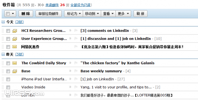 收件箱中,將未讀郵件文字加粗以區分已讀郵件,也是充分利用了相似原則。