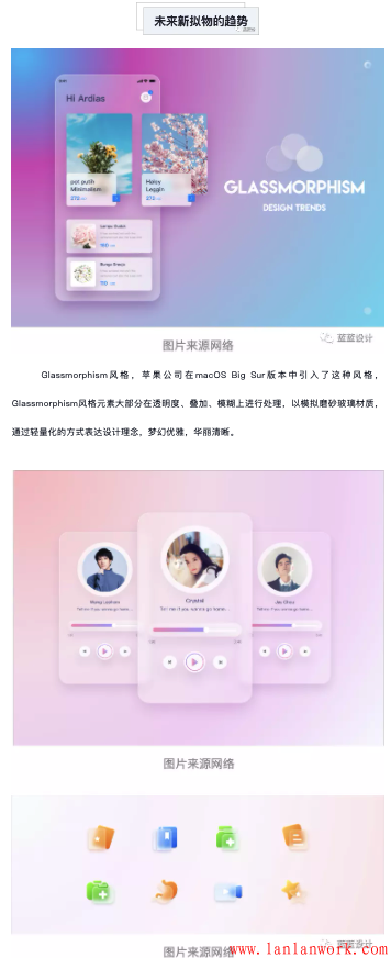 從輕擬物風(fēng)格到Glassmorphism風(fēng)格,擬物化設(shè)計的演變進程已然開啟,未來,無論是3D設(shè)計的加入還是扁平風(fēng)格的延續(xù),“質(zhì)感”都將成為設(shè)計過程中被著重強調(diào)的風(fēng)格。
