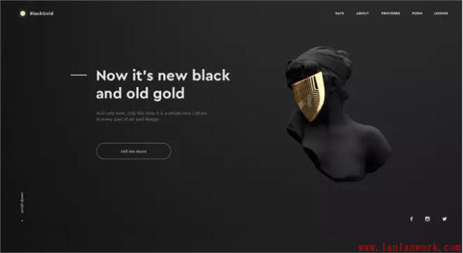 這兩個極簡主義的暗黑主題網站都使用了粗體字體。小心地使用單一強調色的陰影,以符合暗黑模式UI設計原則。