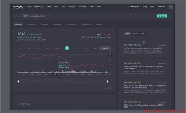 Atom Finance為復雜的外觀使用了黑色主題,并將顏色限制為三種。布局使用負空間,極簡設計。該網站使用微妙的陰影很好地表明不同的組件在用戶界面標高。