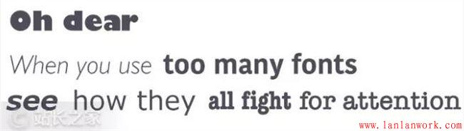 當然,你還可以在設計中使用兩種字體(一種用于標題,一種用于其他文本,比如段落,標題等等)。我們很少在設計中看到兩種以上的字體,但出現(xiàn)這種情況時,是有一定原因的。