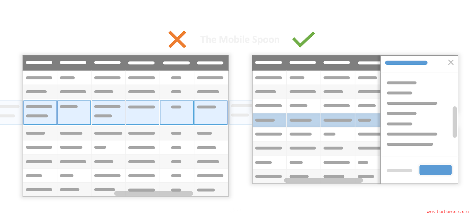 不停的滾動(dòng)、縮小的列、隱藏的文本,這些都會干擾用戶體驗(yàn),所以一定要在小屏幕上驗(yàn)證你的設(shè)計(jì),并且盡可能使用上一段時(shí)間去切實(shí)體驗(yàn)用戶使用情況(而不是隨意測試)。