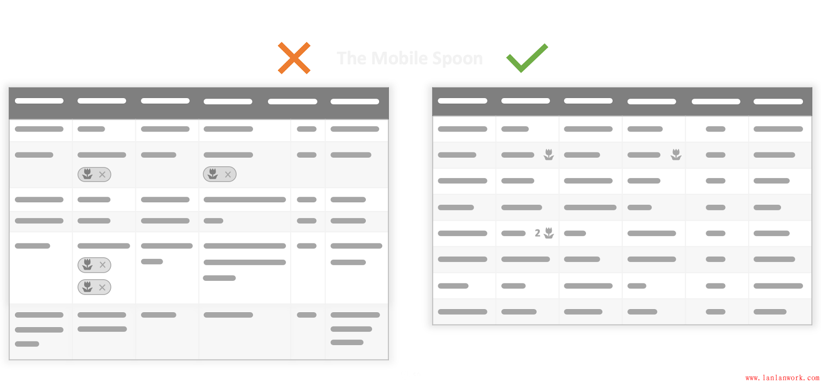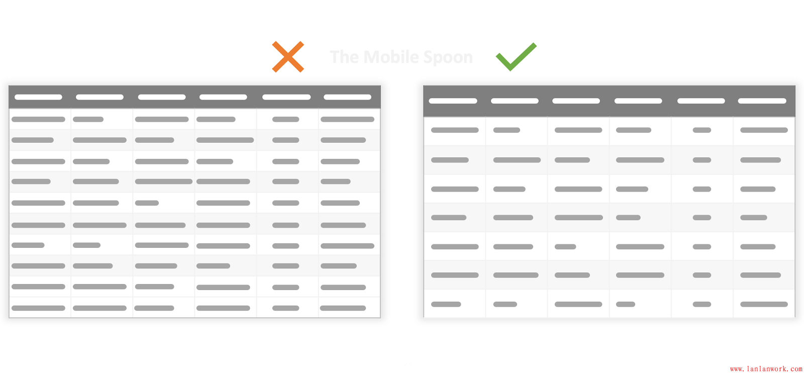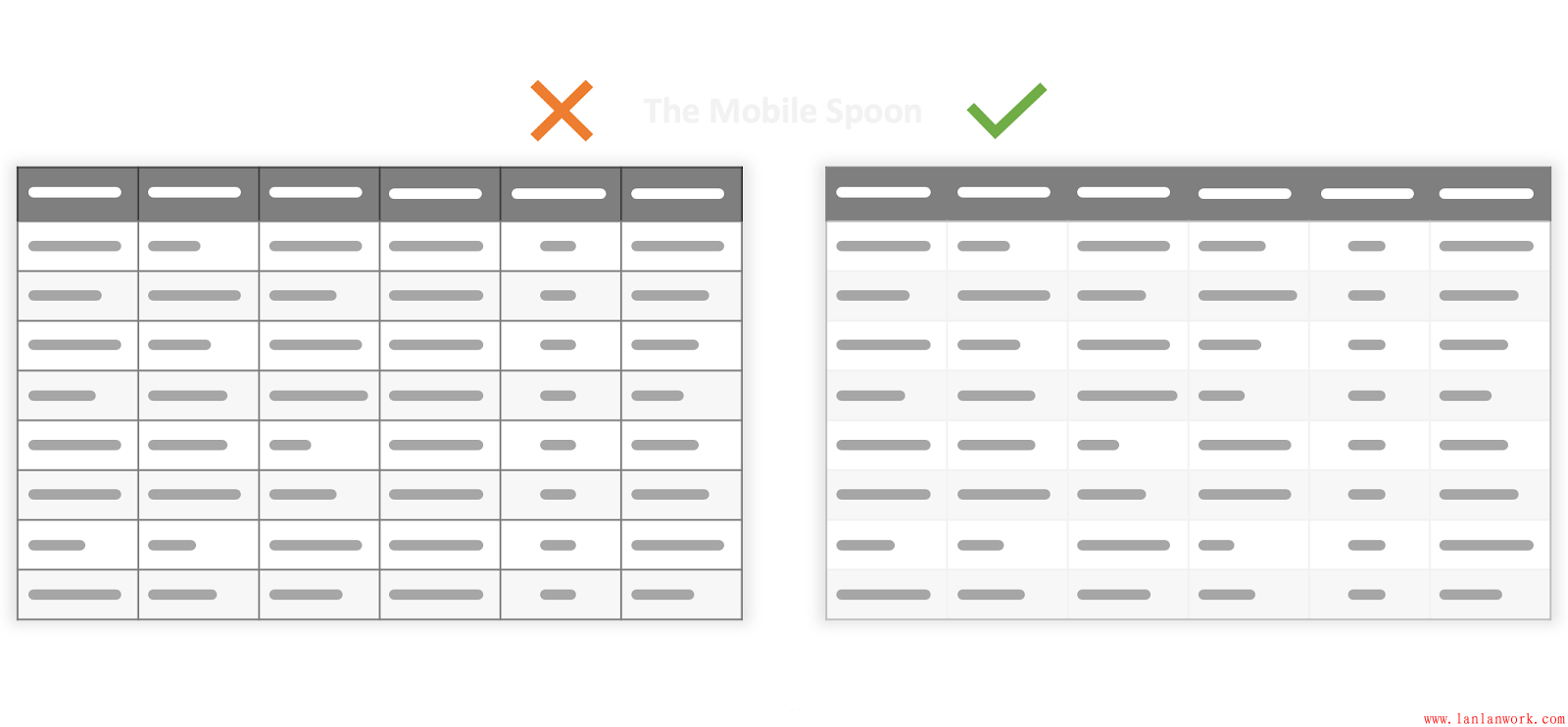 表格和網(wǎng)格是體現(xiàn)結(jié)構(gòu)化信息的,但是,當(dāng)表格的列寬、行高不同時(shí),就會變得混亂,信息也就會變得沒有體系。