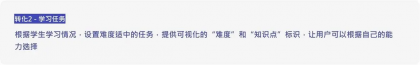 因此,高自我效能的正向循環對于學生用戶來說很重要,從產品/設計層,能夠考慮的是: