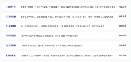 回顧上述內容,從教育軟件層面,游戲化設計的切入點可以歸納為如下內容。