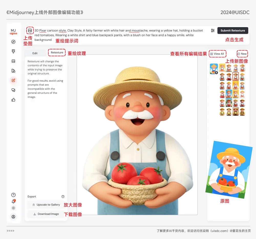 Midjourney最近推出了外部圖片編輯功能,解決了之前無法準確控制生圖內容和不能上傳本地圖像進行二次編輯的問題。新功能支持通過互聯網鏈接或本地上傳圖像,并提供編輯和重繪兩種處理方式。